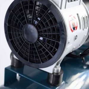 Αεροσυμπιεστής χαμηλού θορύβου με κινητήρα χωρίς λάδι. Με δύο μανόμετρα για ένδειξη πίεσης αέρα