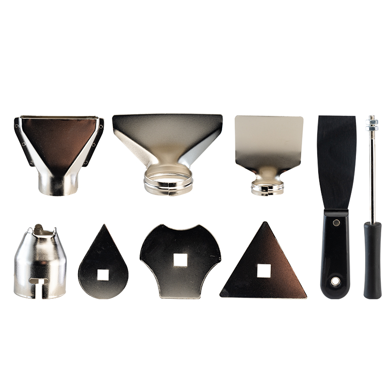 - Περιλαμβάνει: ακροφύσιο ανάκλασης, ξύστρα, κωνικό ακροφύσιο, ακροφύσιο προστασίας γυαλιού, ακροφύσιο επιφανείας, ξ
