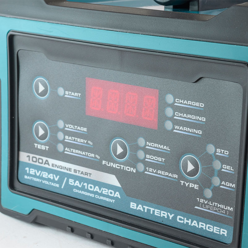 Φορτιστής με δυνατότητες συντήρησης και εκκίνησης μπαταριών με οθόνη LCD 10s με αναλυτικές ενδείξεις λάθους και λειτουργία ανάκτησης για μπαταρίες 12V.