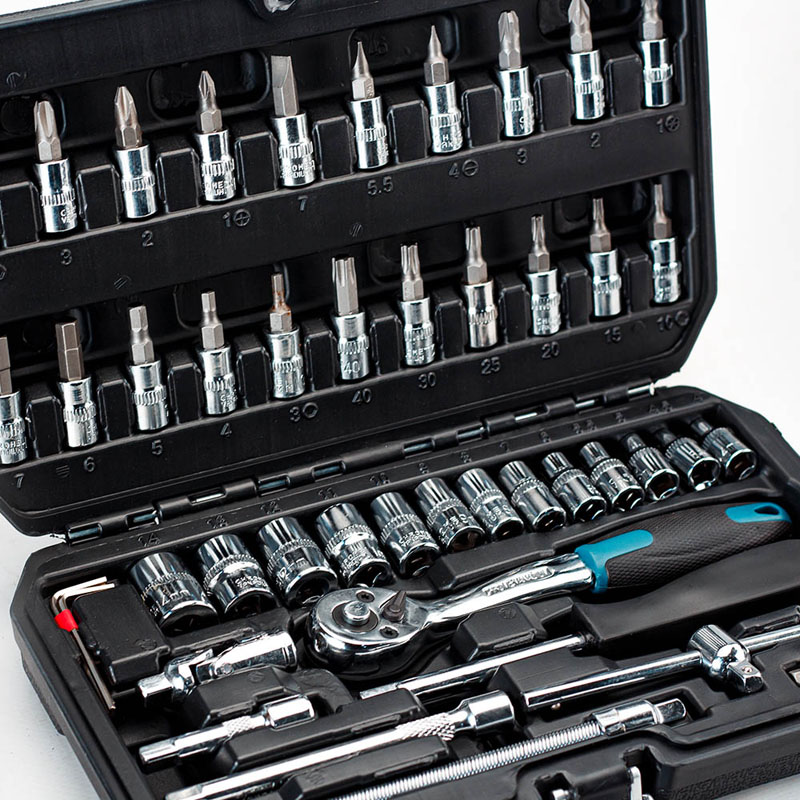 Κασετίνα με Καστάνια της BORMANNΥλικό Κατασκευής Χρώμιο – ΒανάδιοΧρωμιωμέναΕμπεριέχονται : 13 Τεμάχια Καρυδάκια 1/4” 4,4.5,5,5.5,6,7,8,9,10,11,12,13,14mm21 Τεμάχια Μύτες 1/4” – Ίσιες 4,5.5,7 – Philips 1,2,3 – Pozidrive 1,2,3 – Άλλεν 3,4,5,6,7,8 – Torx 10,15,20,25,30,403 Τεμάχια Άλλεν 1.5,2,2.5 mm1 Τεμάχιο 1/4″ Σπαστός Σύνδεσμος2 Τεμάχιο 1/4” Επεκτάσεις 2” & 4 ”1 Τεμάχιο 1/4” Εύκαμπτη Επέκταση 1 Τεμάχιο Ρυθμιζόμενη Μπάρα Τύπου Τ 1 Τεμάχιο Καστάνια 1/4 ” 1 Τεμάχια Κατσαβίδι 1/4” 6 ”1 Τεμάχιο Αντάπτορας για Μύτες