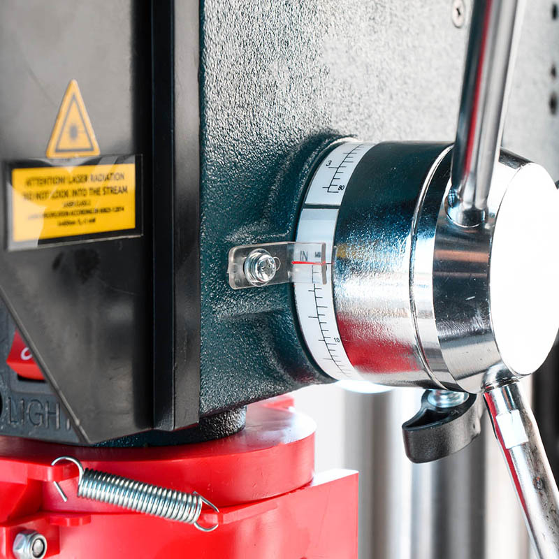 Περιλαμβάνει διακόπτη NVR, ψηφιακή οθόνη ταχύτητας διάτρησης, φως λέιζερ και LED, ρυθμιζόμενη γωνία τραπέζης εργασίας, χειρολαβή τροφοδοσίας τριών ακτίνων, προστατευτικό τσοκ ασφαλείας, ράβδος και γρανάζι για ακριβείς ρυθμίσεις ύψους τραπέζης, ανθεκτική βάση από χυτοσίδηρο