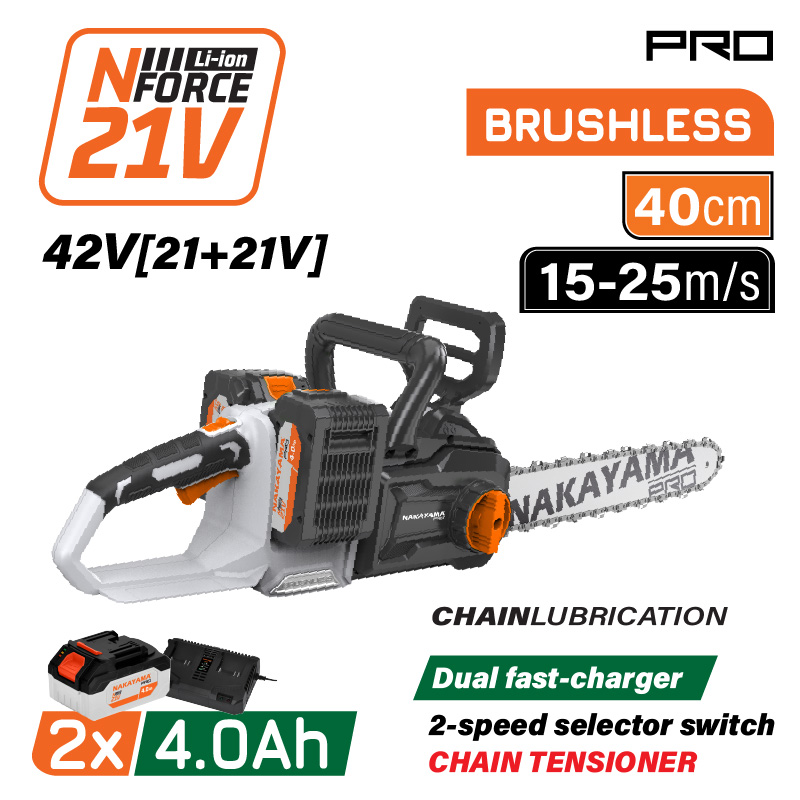 NAKAYAMA Pro EC1711X44 Αλυσοπρίονο Brushless Μπαταρίας 42V,Li-Ion,2x4Ah,Λάμα 40cm,Ταχυφορτιστής 4Α